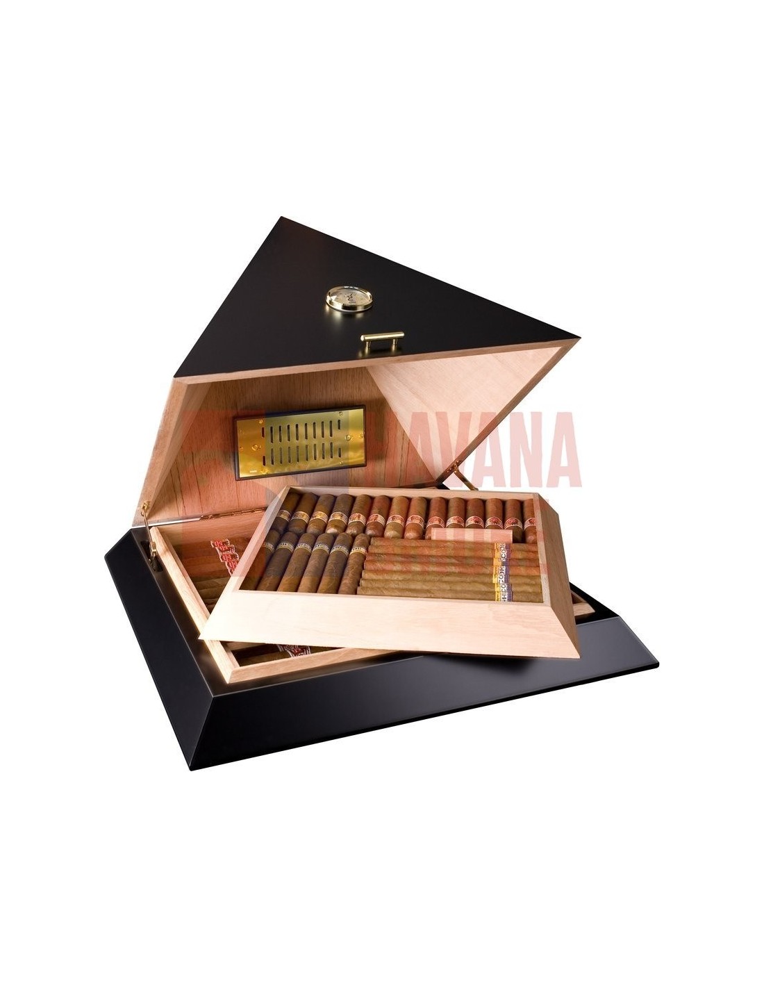 укомплектован ысокоточным откалиброванным волосяным гигрометром и позолоченной увлажнительной системой Adorini Deluxe, основанной на акриловых полимерах