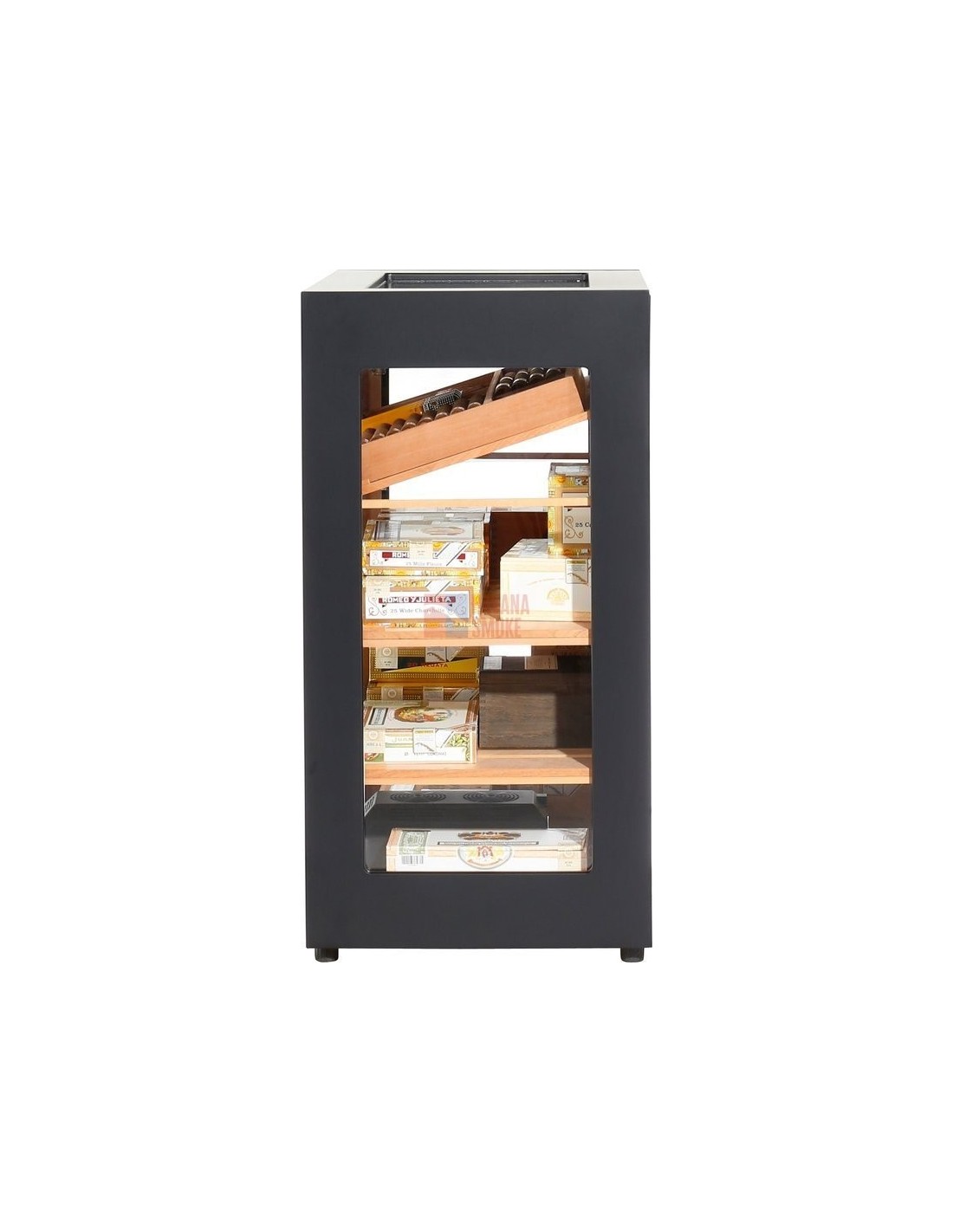 Включает 1 съемный лоток для хранения и презентации отдельных сигар. Угол показа всех лотков может изменять. Вы выбираете уровень каждой полки в зависимости от того, если вы предпочитаете хранить отдельные сигары в лотках или коробках для сигар.