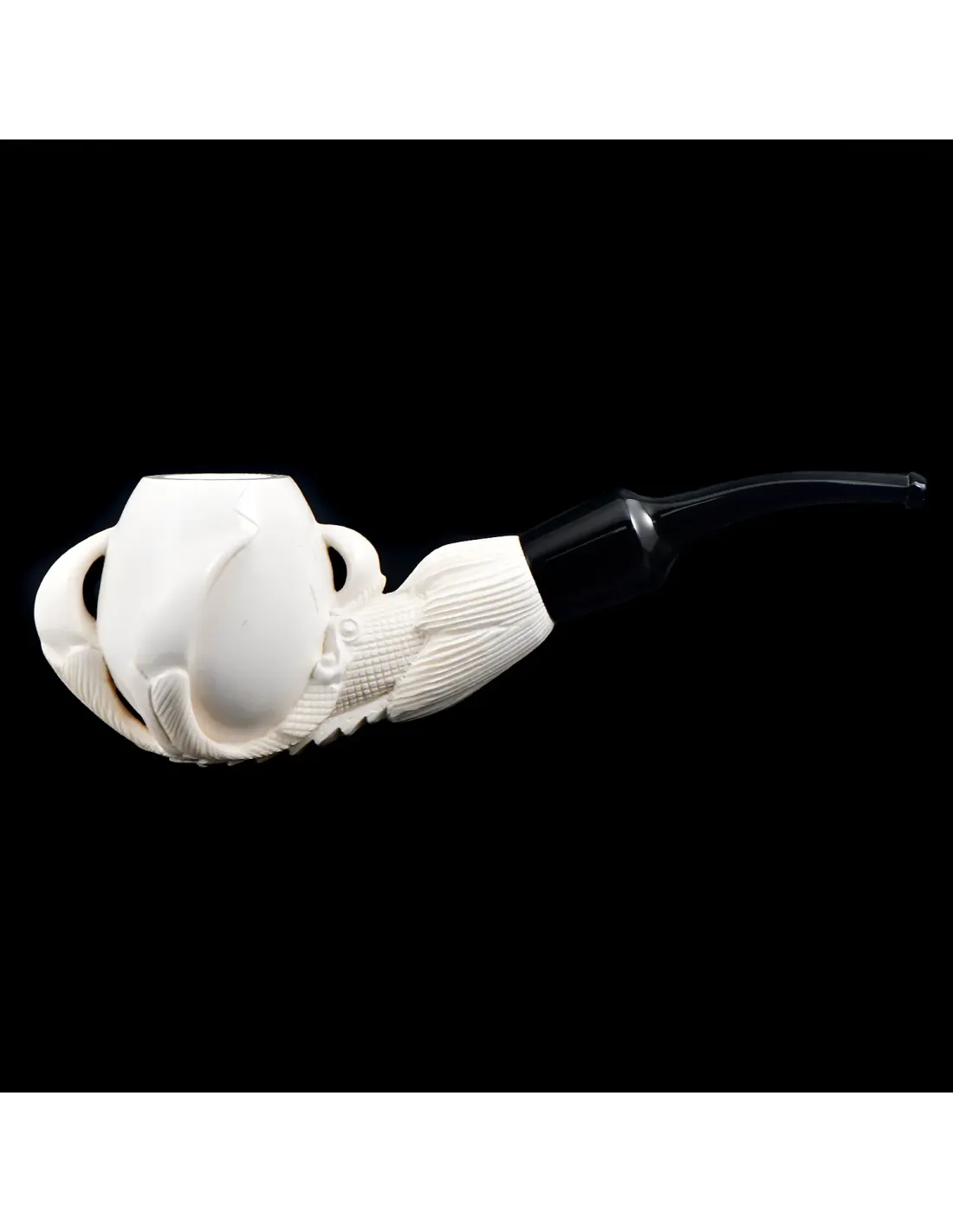 Основное преимущество модели — материал чаши. Натуральная морская пенка, добываемая в Турции, обладает уникальными свойствами. Благодаря своей пористой структуре она эффективно впитывает влагу и смолы, делая процесс курения более прохладным и мягким. Со временем трубка покроется благородной патиной, приобретая индивидуальный оттенок.