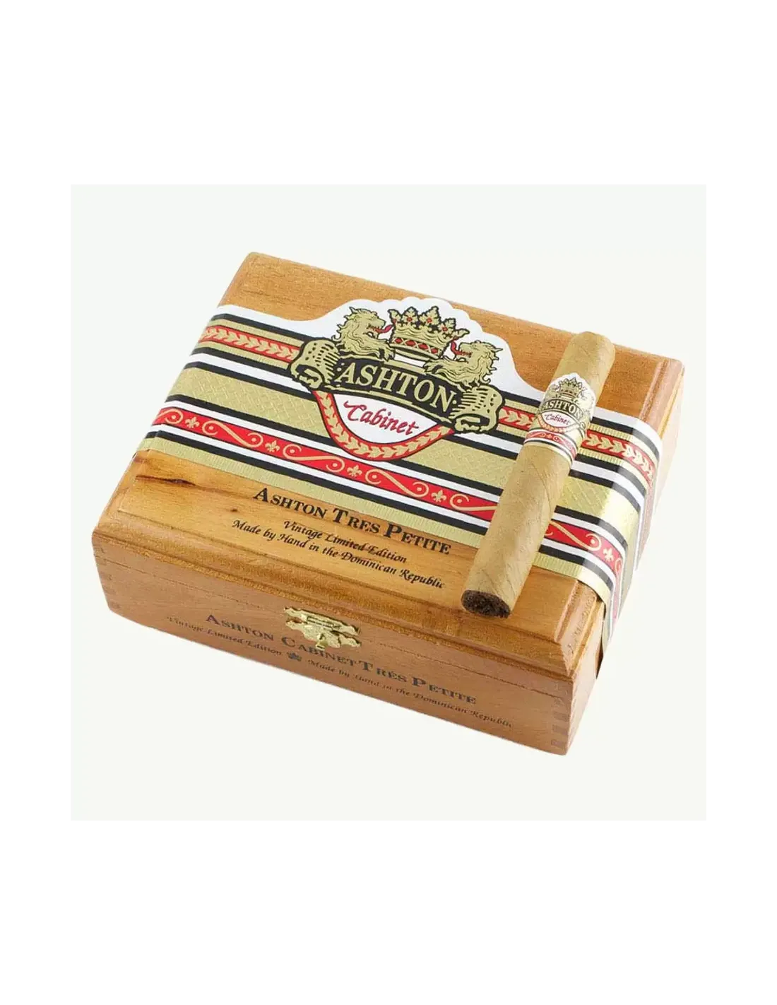 Характеристики: количество сигар в коробке – 10; страна производства – Доминиканская Республика; бренд – Ashton; размер сигары – 114 мм; диаметр сигары – 15 мм; примерное время курения – 20–30 минут; крепость – средняя; начинка – выдержанный доминиканский табак; связующий лист – доминиканский; покровный лист – Connecticut Shade; формат – Tres Petite Corona.