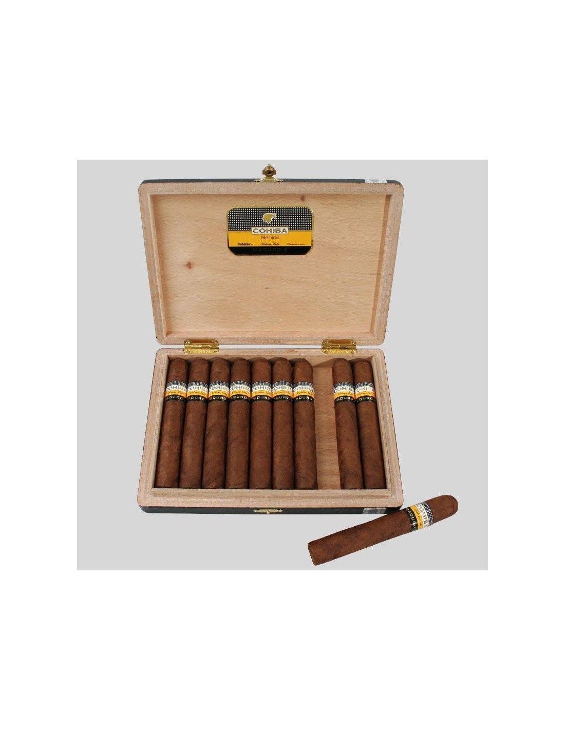 Сигары COHIBA MADURO 5 GENIOS обладают следующими параметрами. Количество сигар в коробке: 10 штук. Страна производства: Куба. Бренд: Cohiba. Размер сигары: 140 мм. Диаметр сигары: 20.6 мм. Время курения: около 80 минут. Крепость сигары: от средней к высокой. Начинка: Куба. Связующий лист: Куба. Покровный лист: Куба (Maduro, выдержанный 5 лет). Формат: Genios.