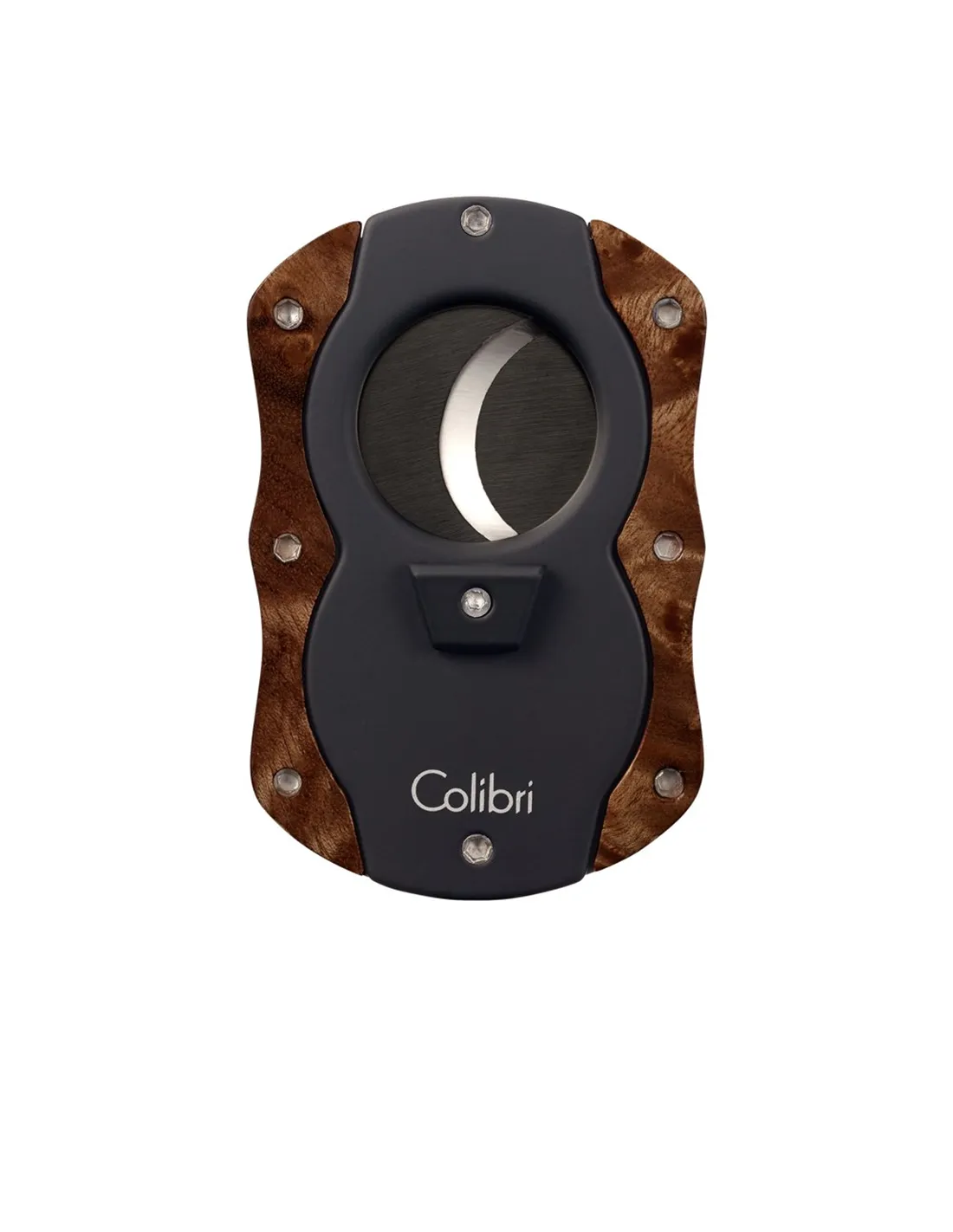 Гильотина Colibri с отделкой деревом, Темный кап-CU100T31 — стильный аксессуар для аккуратного и ровного среза сигары. Корпус сочетает надежный металл и благородную деревянную накладку темного оттенка, за счет чего рез выглядит аккуратным, а сам резак приятно держать в руке.