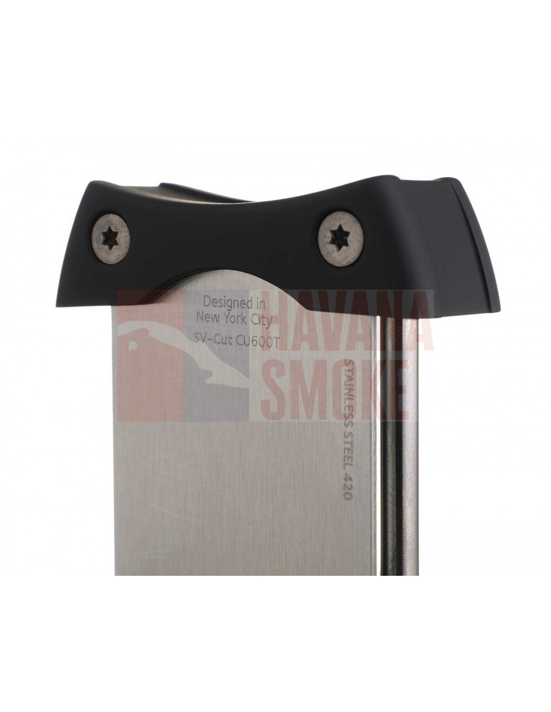 Две острые стальные лезвия работают плавно и без рывков, сигара фиксируется надежно, срез получается ровным и аккуратным. Конструкция рассчитана на комфортное удержание в руке, гильотину удобно открывать и закрывать даже одной рукой. Компактный размер позволяет носить аксессуар в кармане или портсигаре, не опасаясь случайного раскрытия.