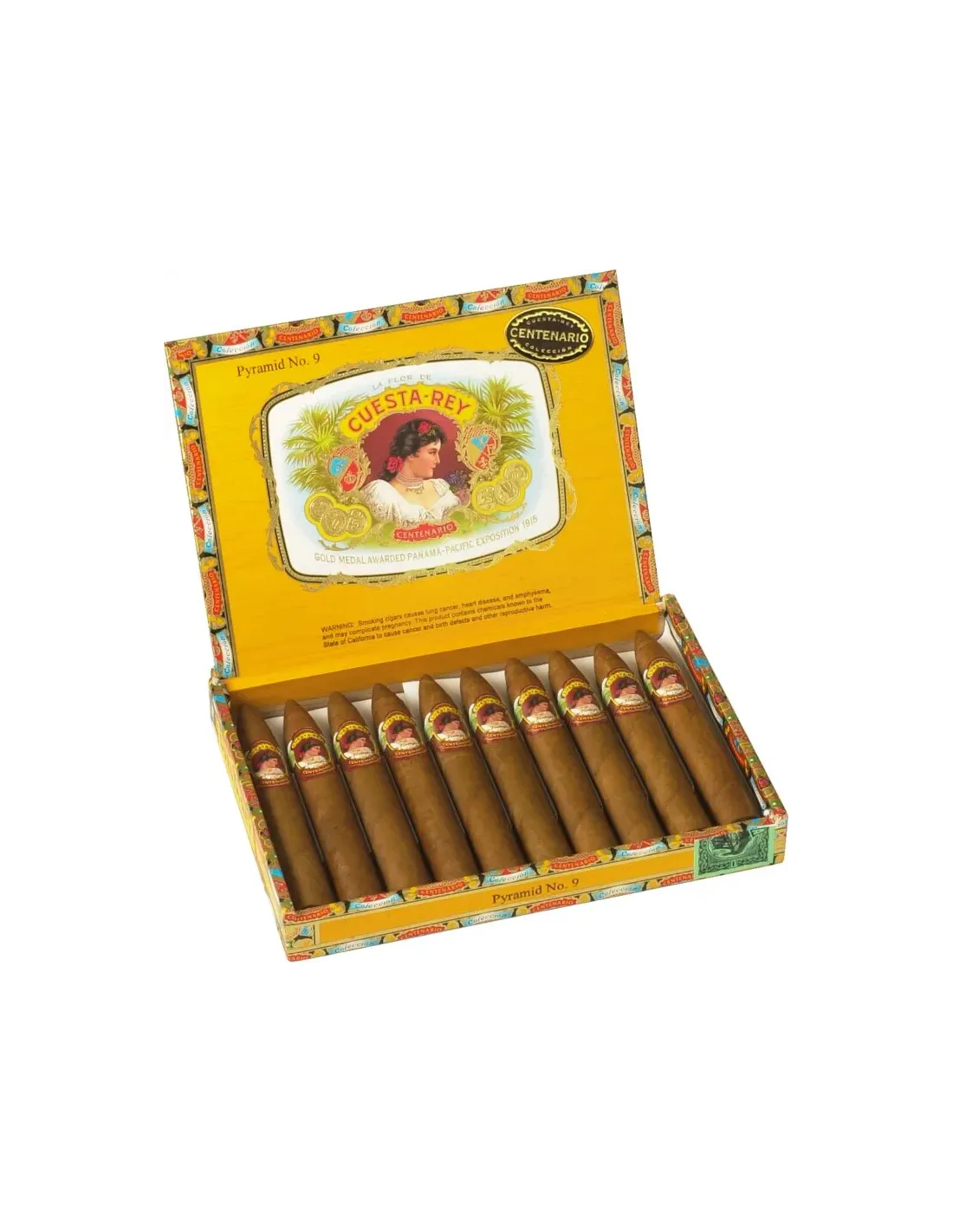 Характеристики: количество сигар в коробке — 10; страна производства — Доминиканская Республика; бренд — Cuesta Rey; размер сигары — 140 мм; диаметр сигары — 18 мм; ориентировочное время курения — 45–60 минут; крепость сигары — мягкая–средняя; начинка — отборный доминиканский табак; связующий лист — доминиканский; покровный лист — Connecticut Shade Natural; формат — Pyramid № 9.