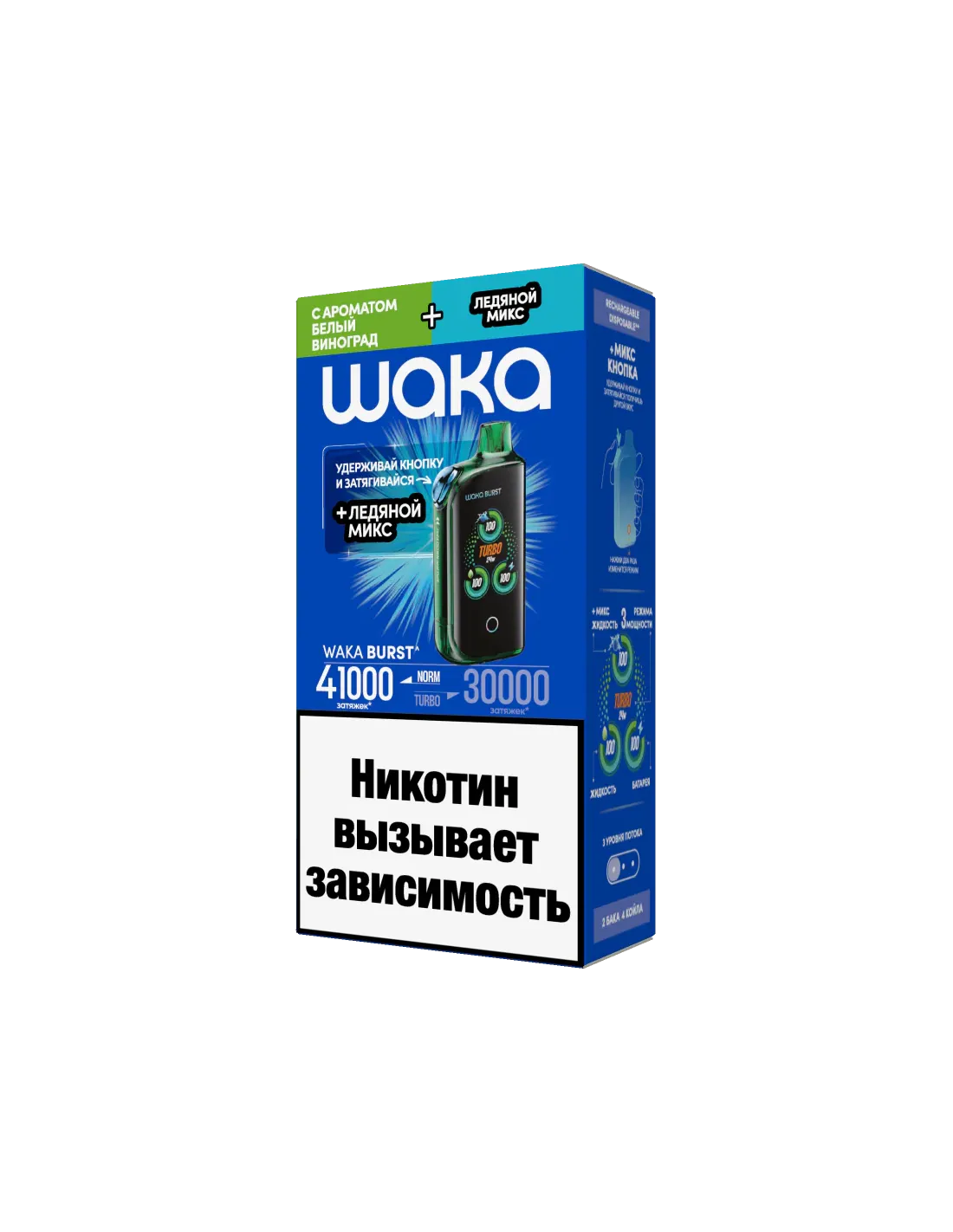 Электронная сигарета WAKА BURST 41000 (WFT41K-004 Белый Виноград+Ледяной МИКС)