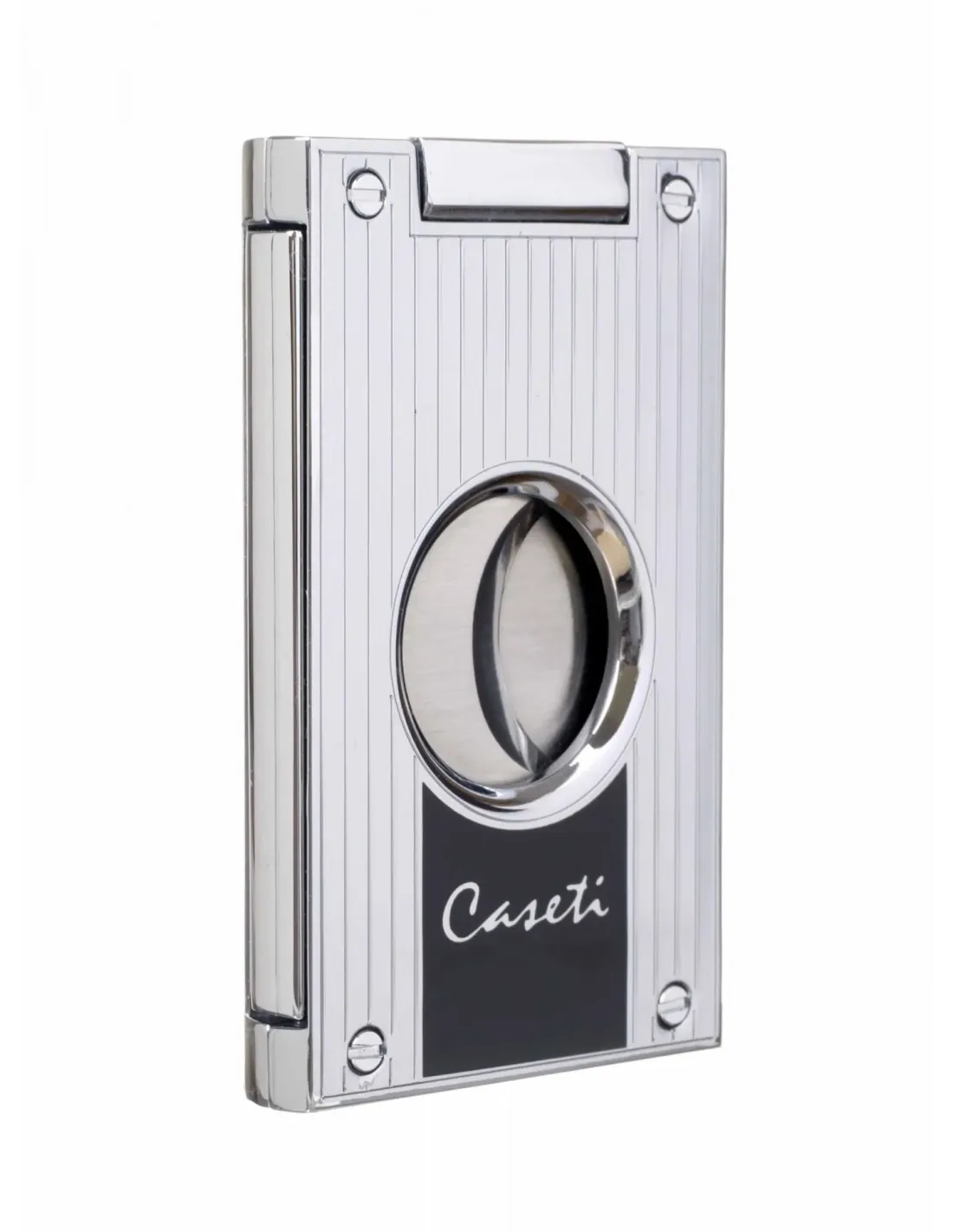 Гильотина Caseti, хром — элегантный аксессуар для аккуратной обрезки сигар. Корпус с хромированным покрытием хорошо лежит в руке и не скользит, а компактный размер позволяет легко носить гильотину с собой в кармане или портсигаре.