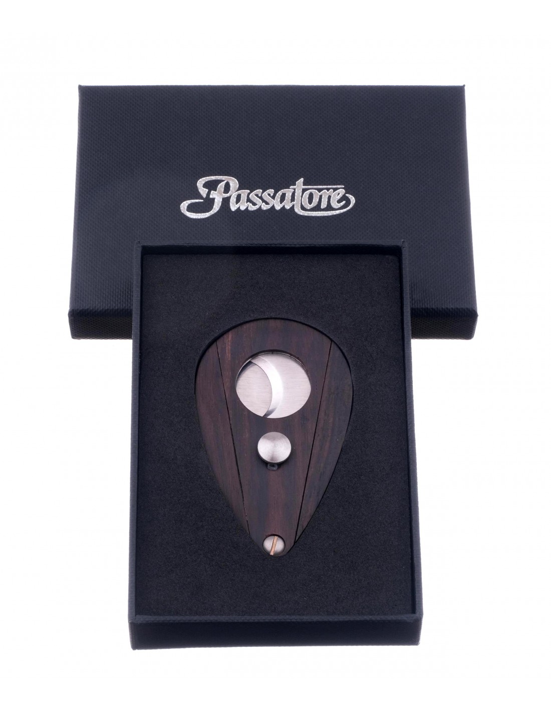 Сигарная гильотина от известного немецкого табачного бренда Passatore. Проста в исполнении, но при этом очень удобна в использовании. Изготовлена из нержавеющей стали с отделкой из натурального дерева по принципу гильотин от компании Xikar. Для сигар диаметром до 21 мм.