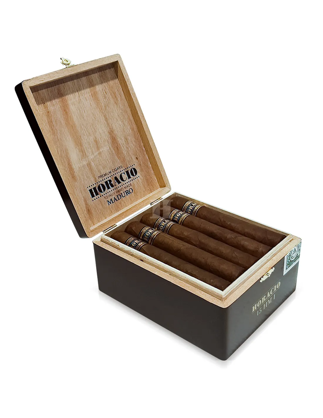 HORACIO MADURO HM I: 20 сигар в коробке; страна производства — Никарагуа; бренд — HORACIO; размер сигары — 127 мм; диаметр — 20 мм; примерное время курения — 45–60 минут; крепость — средняя-ближе-к-крепкой; начинка — отборный никарагуанский и коста-риканский табак; связующий лист — никарагуанский; покровный лист — тёмный maduro; формат — Robusto.