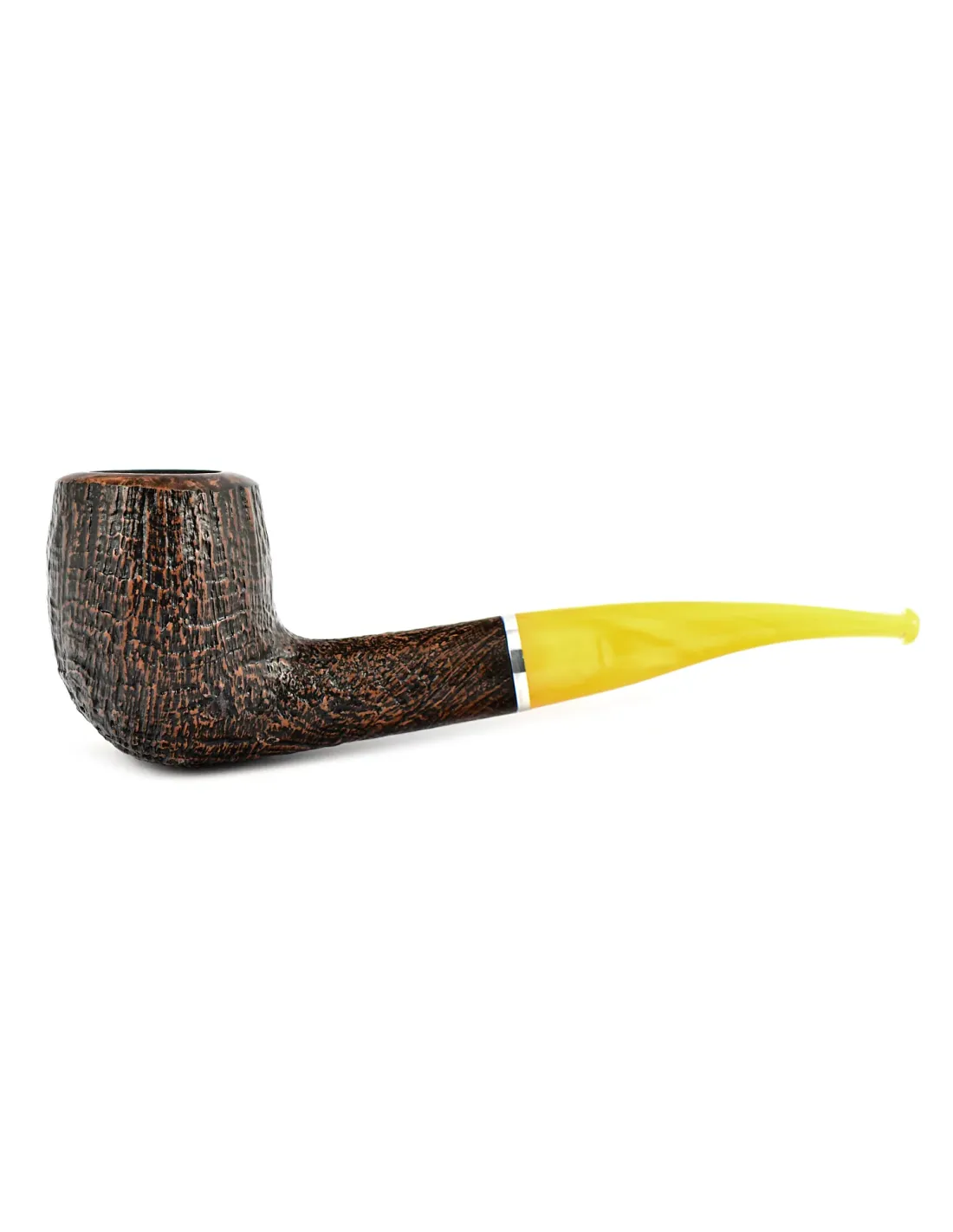 Чаша выполнена из выдержанного бриара, устойчивого к высоким температурам и сохраняющего вкус табака без посторонних оттенков. Мундштук сделан из акрила, он не боится влаги, не выцветает и хорошо держит форму при регулярном использовании. Внутри трубки нет фильтра и фильтродержателя: дым проходит напрямую, раскрывая аромат табака более насыщенно и естественно.
