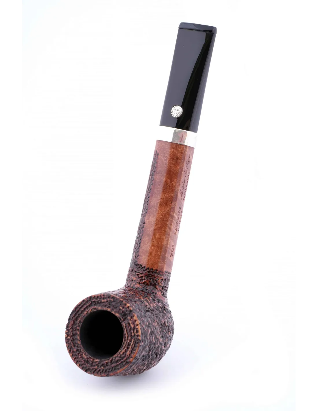 Чаша имеет комфортный объём: её хватает на неторопливую сессию, при этом табак горит ровно, без постоянной поправки. Внутренняя обработка аккуратная, края надежно защищены, что делает приработку более предсказуемой. Мундштук обеспечивает мягкую тягу, легко зажимается зубами и не давит на челюсть, что особенно важно тем, кто любит держать трубку в зубах.