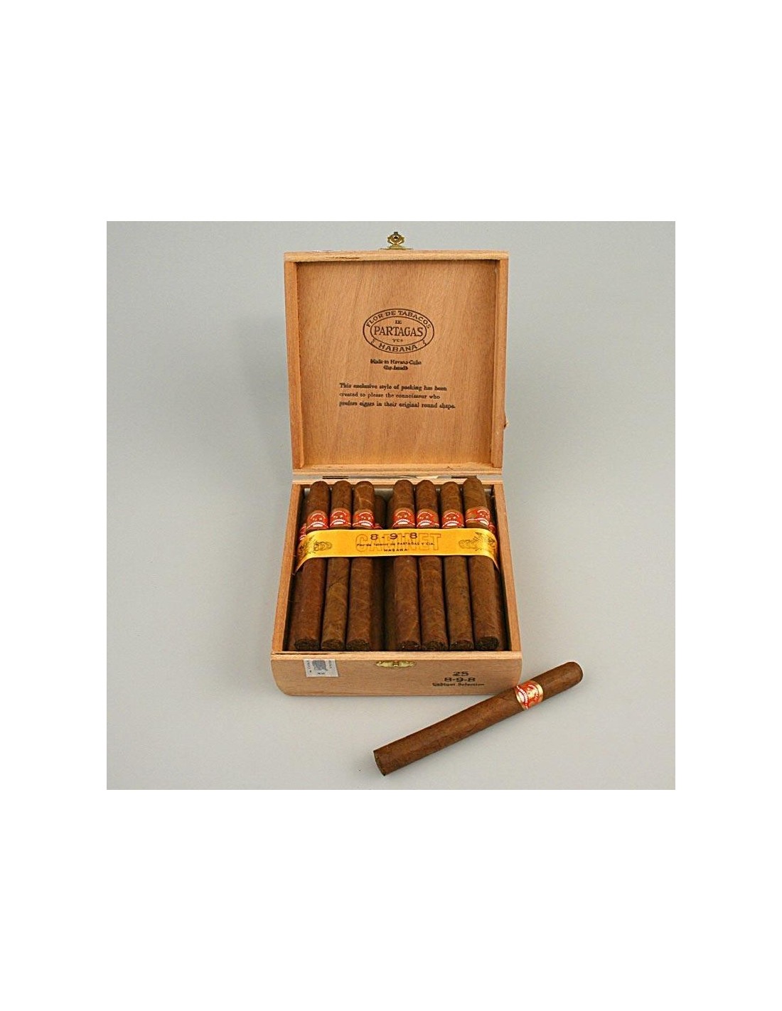 Сигары PARTAGAS 8-9-8 поставляются в фирменной лакированной коробке на 25 штук, уложенных в три ряда. Основные параметры этой витолы: страна производства — Куба, бренд — Partagas, формат — Dalia, размер — 170 мм, диаметр — 17,07 мм. Ориентировочное время курения составляет 70-80 минут. Крепость сигары оценивается как высокая. Начинка, связующий и покровный листы полностью состоят из отборного кубинского табака.