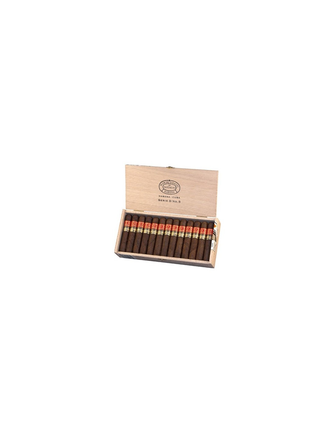 Основные характеристики PARTAGAS SERIE D № 5: Количество сигар в коробке: 25. Страна производства: Куба. Бренд: Partagas. Размер сигары: 110 мм. Диаметр сигары: 19.84 мм (RG 50). Время курения: 25-40 минут. Крепость сигары: Крепкая. Начинка: Куба. Связующий лист: Куба. Покровный лист: Куба. Формат: Petit Robusto.