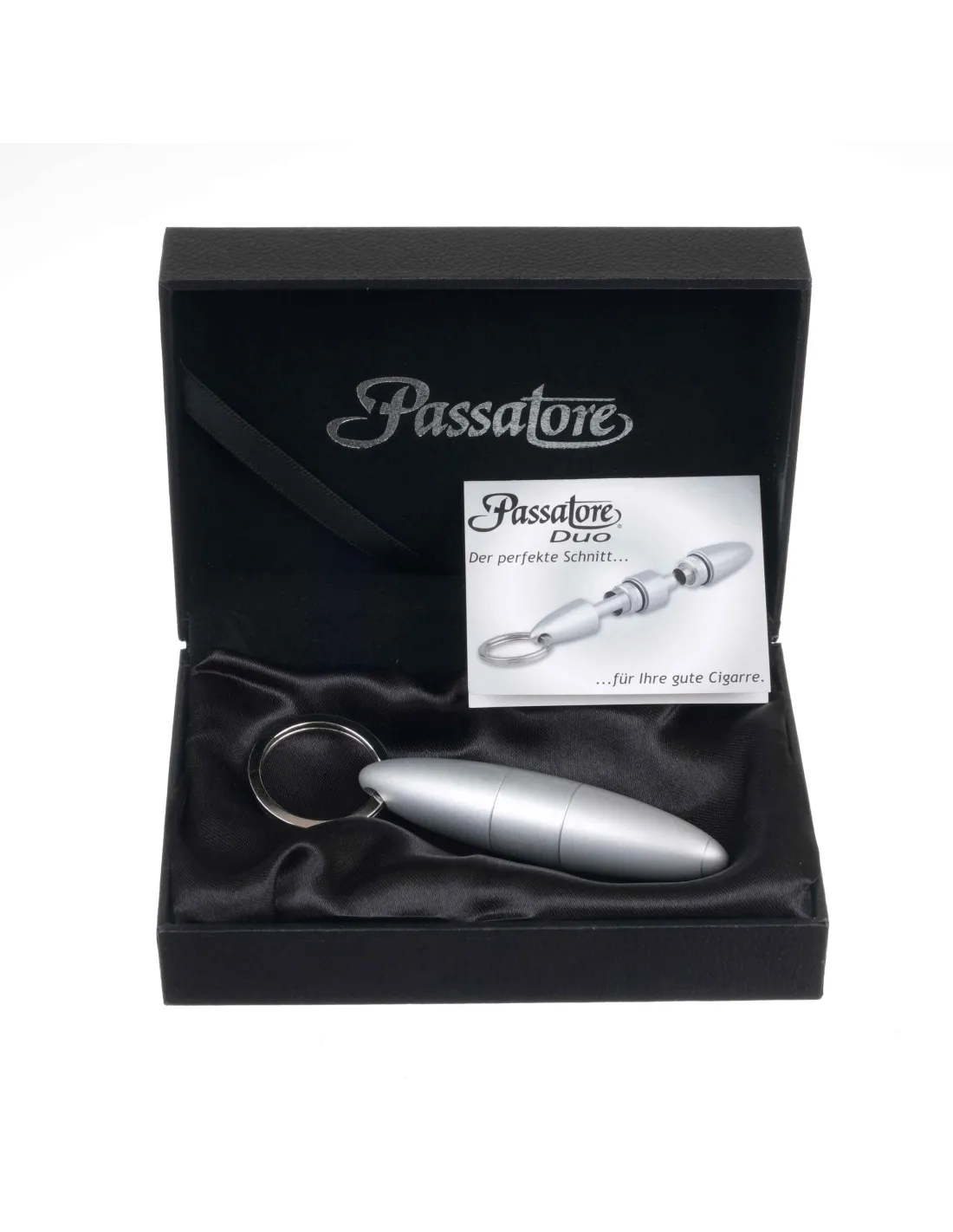 Сигарная гильотина от известного немецкого табачного бренда Passatore. Действует по принципу гильотин Xikar - двойное лезвие в пластиковом корпусе раскрывается пластинчатой пружиной при нажатии на кнопку. Для сигар диаметром до 30 мм.