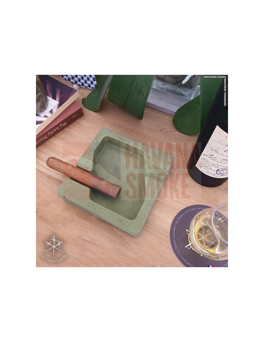 Пепельница на 4 сигары тайваньской марки Tom River. Идеальный вариант для курительных комнат и переговорных. Также хорошо сочетается с хьюмидором и настольной зажигалкой в черном цвете. Съемная чаша для пепла с хватом для удобного мытья. Съемная гильотина ставится в гнездо и работает как настольная. Отделка черный матовый лак со вставками из экокожи.