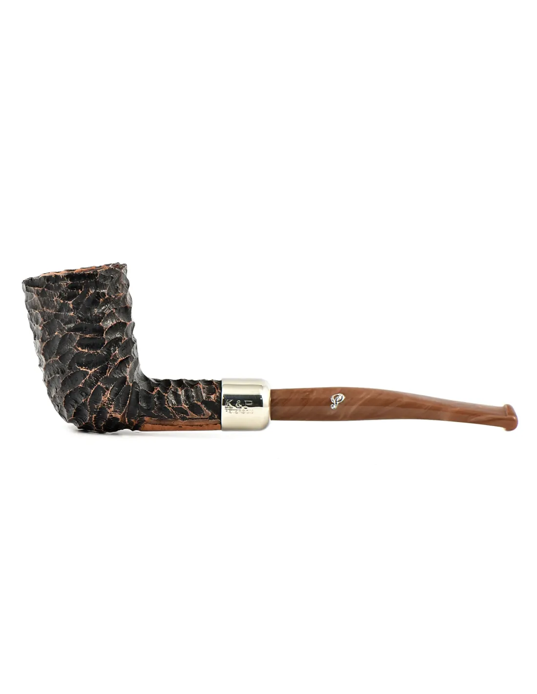 Трубка Peterson - Derry - Rustic 124 представляет собой образец сдержанной ирландской классики. Тёмная рустированная поверхность не только придает трубке строгий вид, но и делает её приятной на ощупь, скрывая возможные мелкие царапины. Форма 124 — это традиционный прямой бильярд, один из самых узнаваемых и удобных силуэтов в мире трубок, который комфортно лежит в руке. Ярким акцентом в дизайне служит блестящее никелевое кольцо, которое элегантно соединяет чашу с мундштуком. Эта модель создана для курения без фильтра, что позволяет в полной мере ощутить чистый и насыщенный вкус выбранного табака.