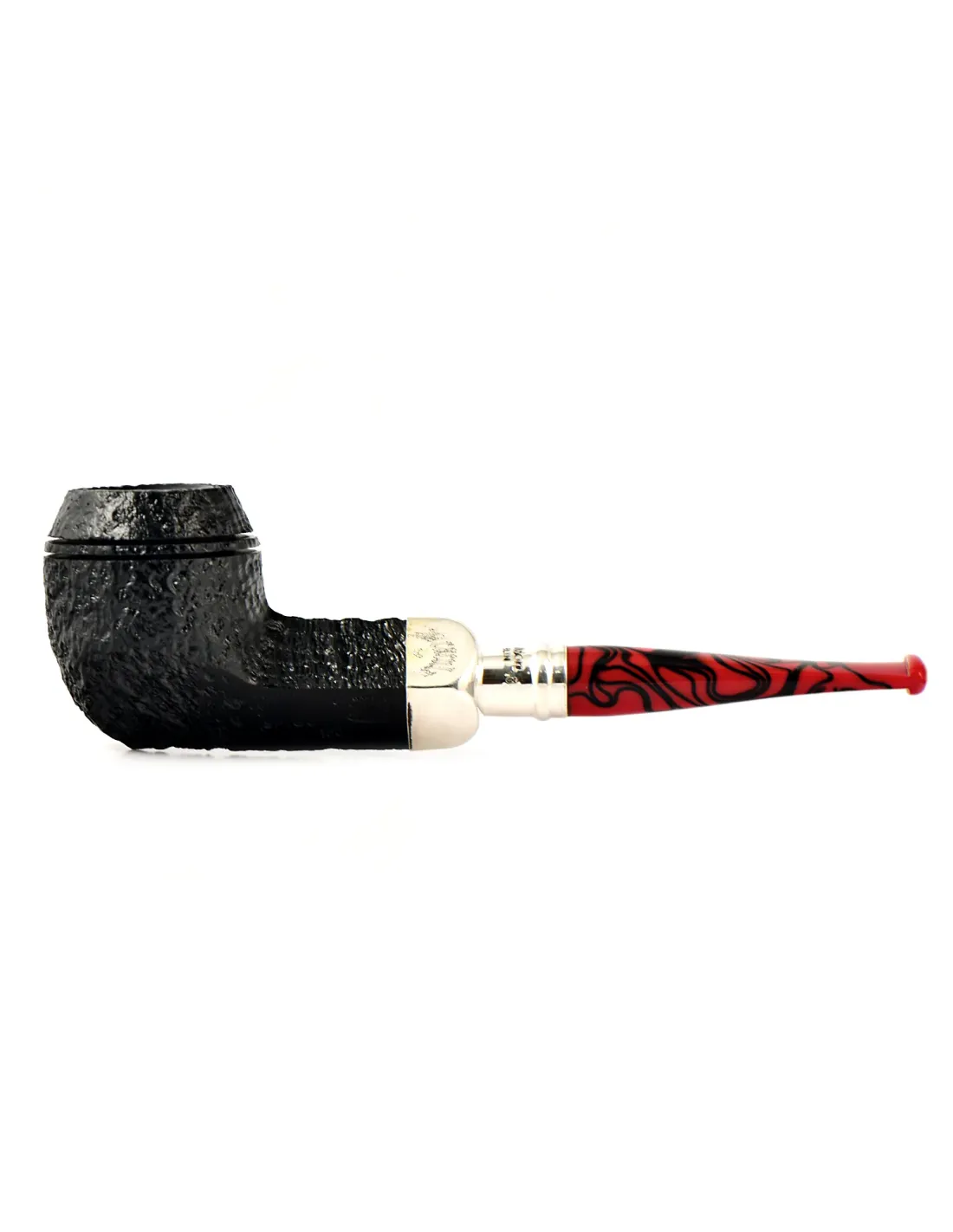 Трубка Peterson Dracula - Spigot SandBlast - 150 представляет собой яркое и харизматичное прочтение классической формы от знаменитых ирландских мастеров. Глубокий черный цвет чаши, обработанной пескоструйным методом для создания рельефной фактуры, эффектно контрастирует с мундштуком, в котором смешались черные и кроваво-красные оттенки. Соединение типа "spigot" с металлическим кольцом не только придает дизайну законченный вид, но и обеспечивает высокую надежность крепления.