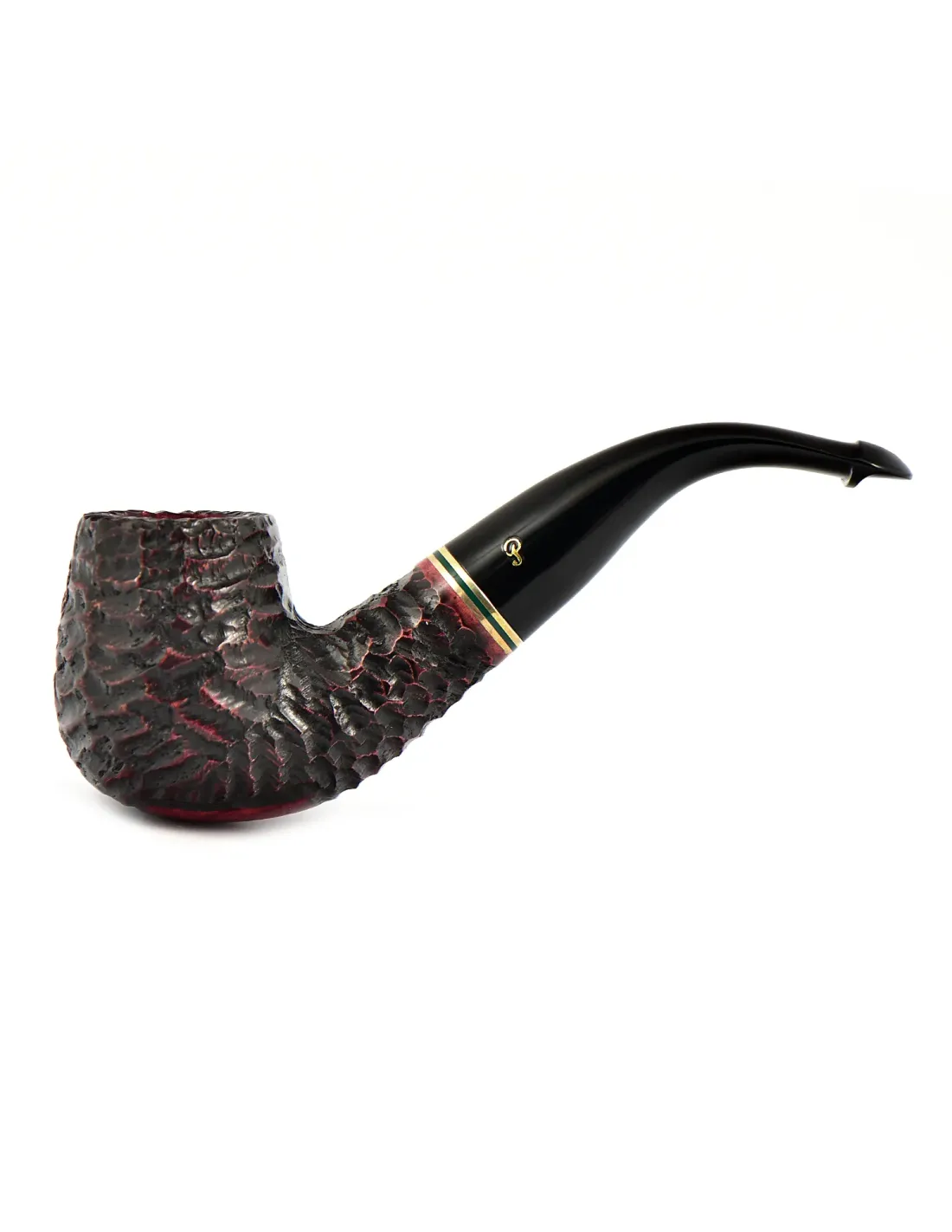 Трубка Peterson Emerald Rustic XL90 P-Lip представляет собой яркий пример ирландского мастерства. Её главная особенность — насыщенный изумрудно-зеленый цвет, который выделяет её среди более традиционных моделей. Глубокий оттенок превосходно сочетается с рустированной поверхностью чаши. Такая рельефная обработка бриара не только создает приятные тактильные ощущения, но и делает трубку более практичной в повседневном использовании.