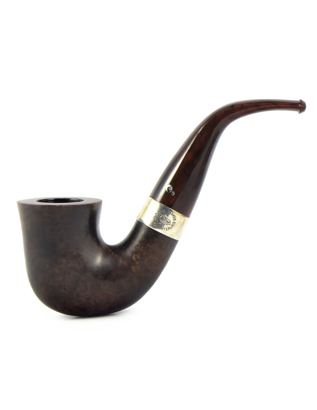 Плавный изгиб формы "бент биллард" обеспечивает комфортное удержание как в руке, так и в зубах. Чаша из бриара имеет гладкую полированную поверхность теплого коричневого оттенка. Главный акцент сделан на широком серебряном кольце, которое украшает гравировка кельтской арфы — национального символа Ирландии. Модель предназначена для курения без фильтра, что позволяет ощутить чистый и прямой вкус табачной смеси.