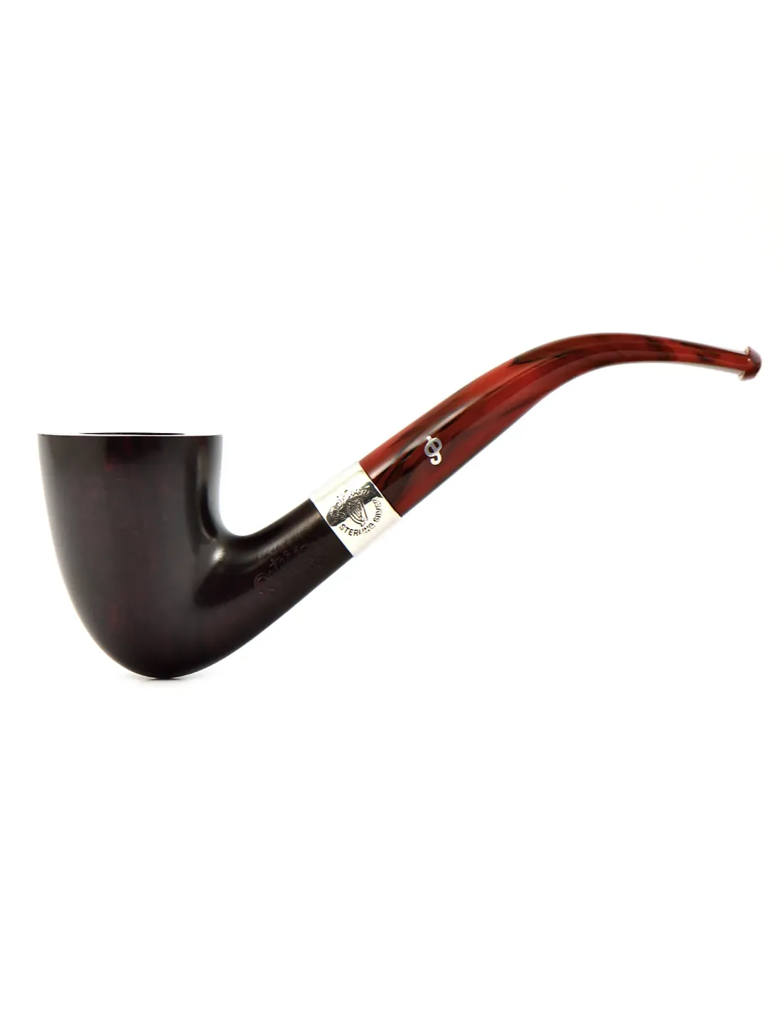 Трубка Peterson Irish Harp - 127 представляет собой элегантное воплощение ирландских традиций. Эта модель из знаменитой серии Irish Harp отличается гладкой полированной поверхностью глубокого, насыщенного каштанового оттенка. Главный акцент, который придает трубке особый шарм, — это широкое серебряное кольцо, украшенное гравировкой кельтской арфы, национального символа Ирландии.