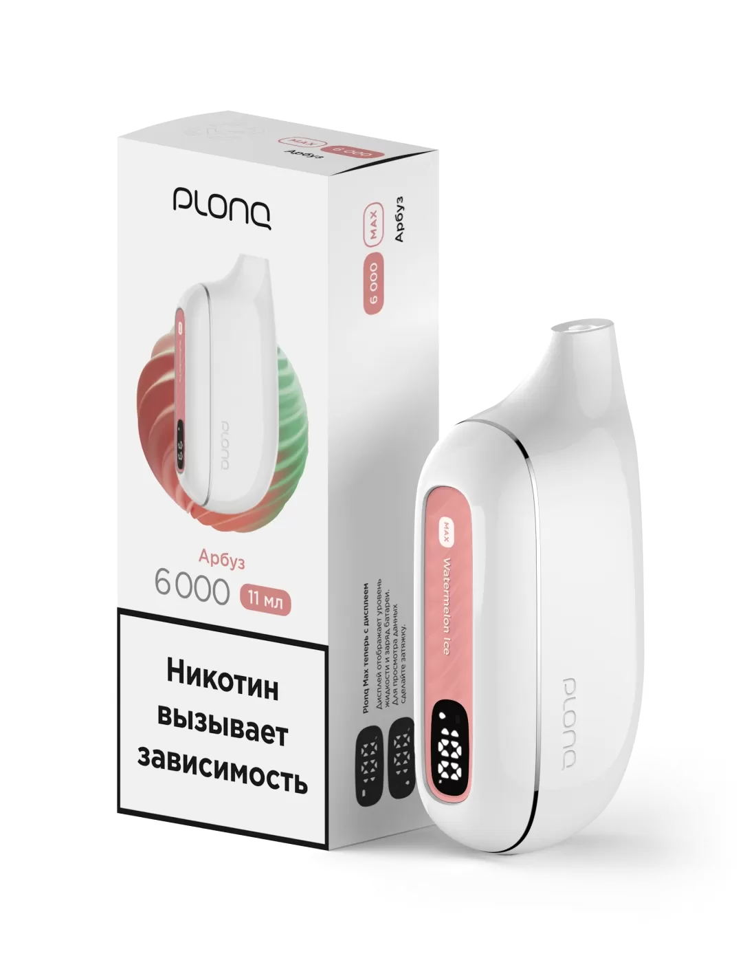 Plonq Max Арбуз дарит насыщенный вкус спелого арбуза с освежающим послевкусием. Компактный корпус удобно лежит в руке и легко помещается в карман, а стабильная подача пара сохраняется до последней затяжки.