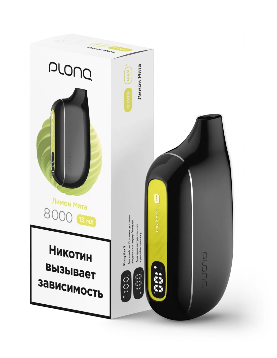 Электронная сигарета Plonq MAX S Лимон Мята, 8000 затяжек