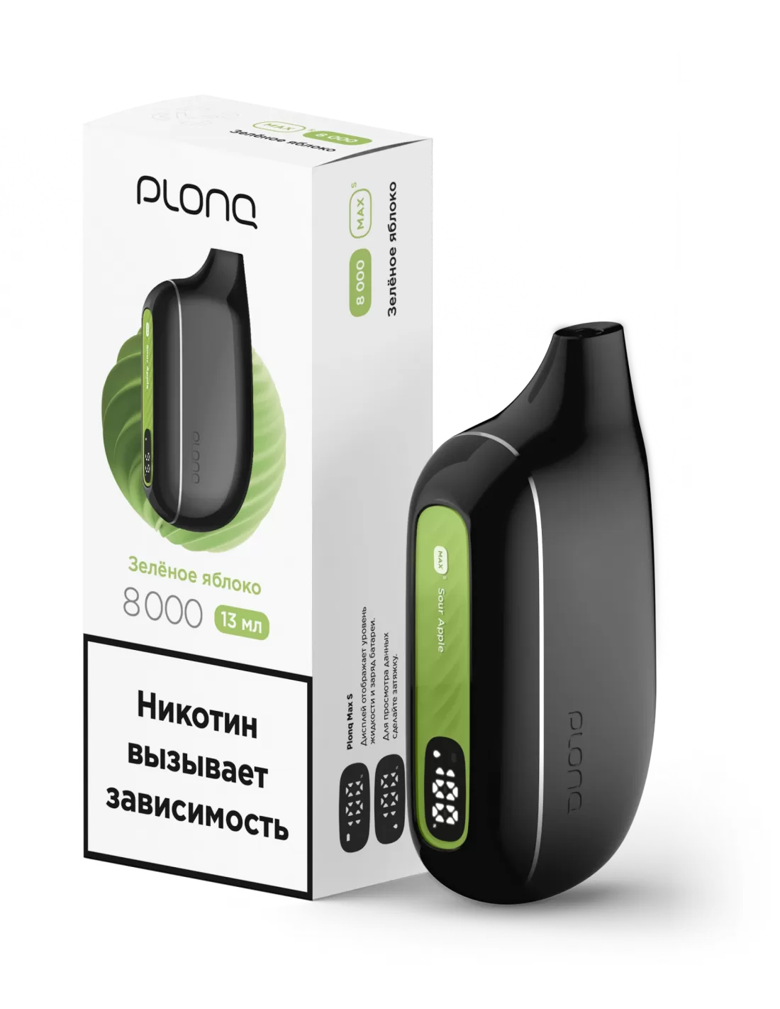 Электронная сигарета Plonq MAX S Зеленое яблоко, 8000 затяжек