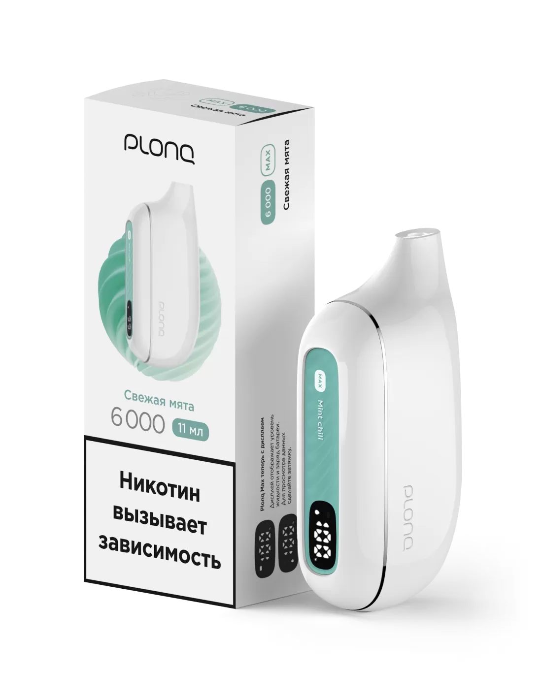 Электронная сигарета Plonq Max Свежая мята — 6000 затяжек; вкус: холодная мятная свежесть; аккумулятор: повышенной емкости для длительного использования.