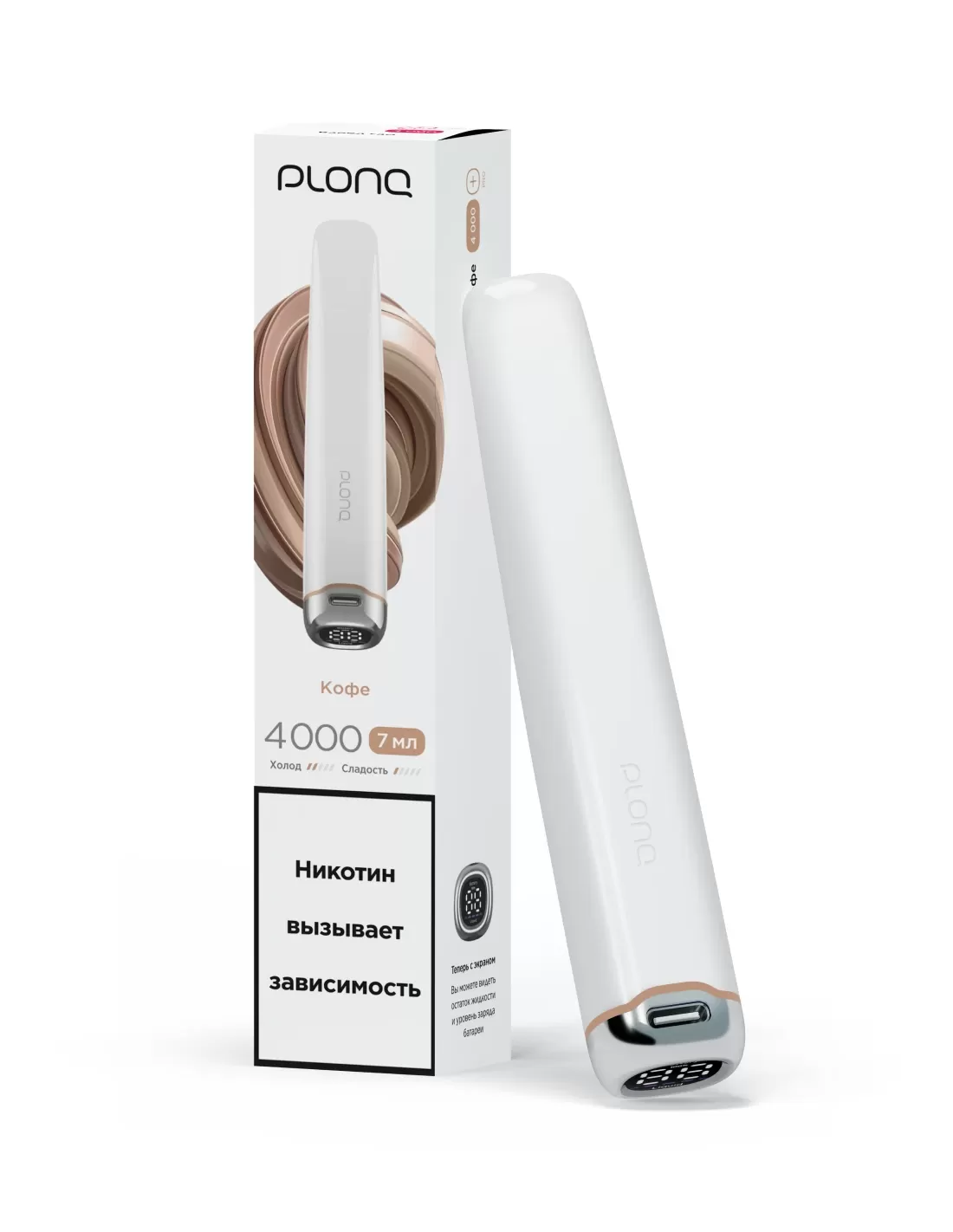 Электронная сигарета Plonq Plus Pro Кофе 4000 затяжек: количество затяжек — до 4000, вкус — насыщенный кофе с мягкой сладостью, аккумулятор — высокой емкости для длительного парения.