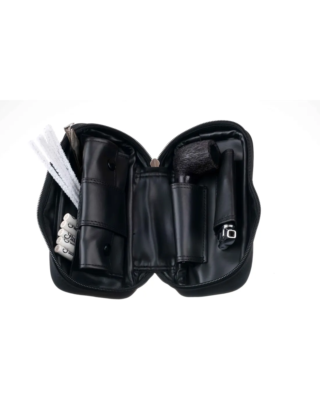 1. Кожаная сумка на 2 трубки с отделениями для аксессуаров. Размер сумки: 20 х 10 х 6,5 см.