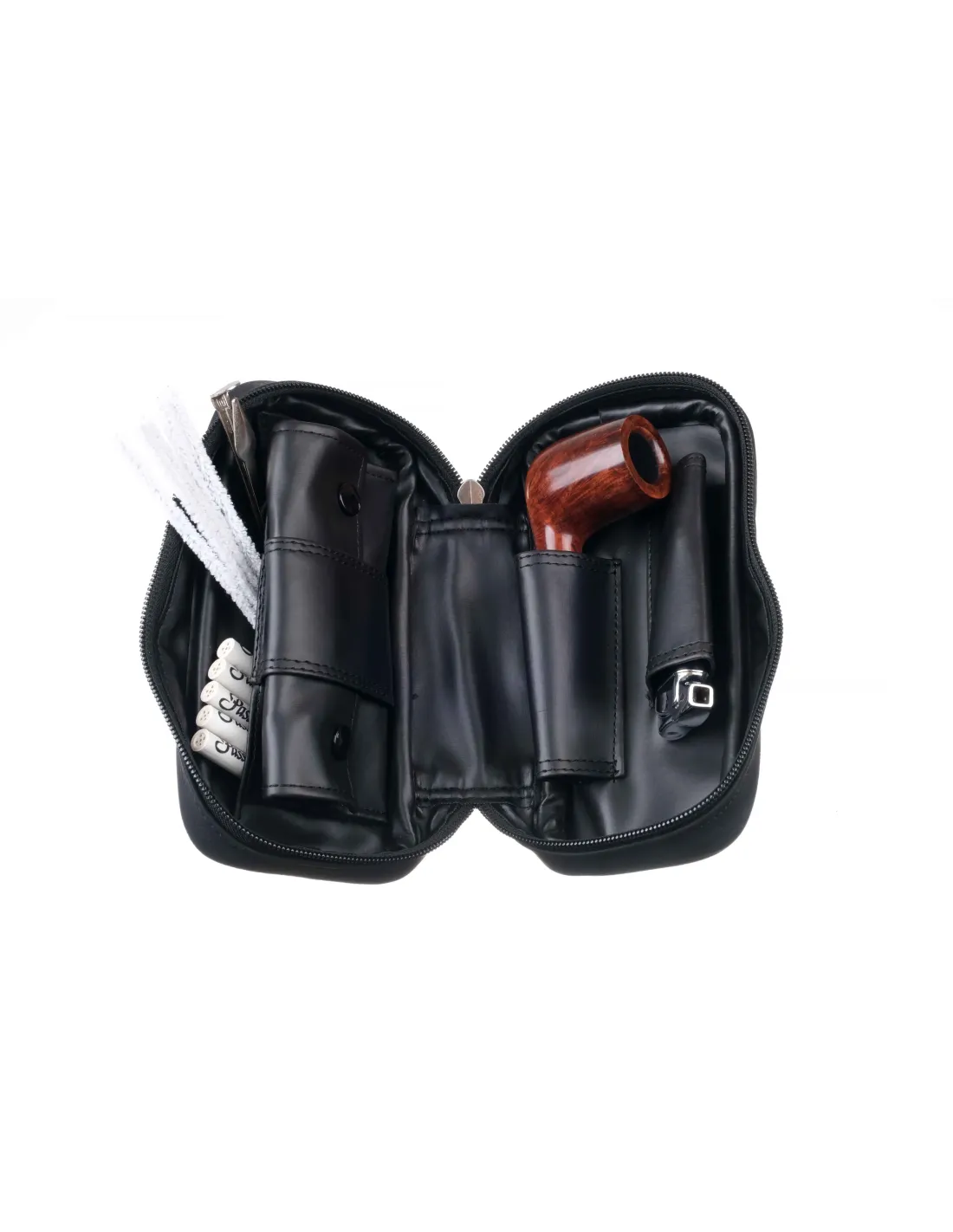 1. Кожаная сумка на 2 трубки с отделениями для аксессуаров. Размер сумки: 20 х 10 х 6,5 см.