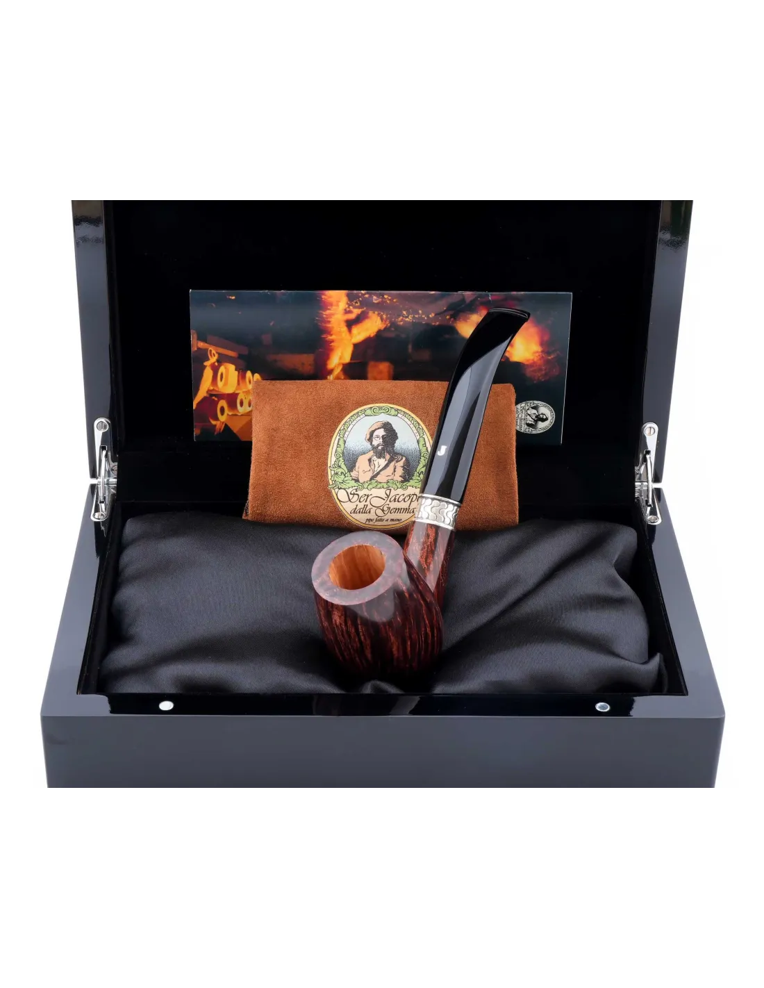 Трубка Года SER JACOPO DOMINA 1997 в шкатулке S905-1 — коллекционная модель с характером, созданная итальянскими мастерами специально для ценителей редких выпусков. Корпус выполнен из качественного бриара с выразительной фактурой древесины, классическая форма дополнена аккуратным мундштуком и элегантным кольцом на соединении. В комплект входит стильная шкатулка, которая не только подчеркивает статус изделия, но и защищает его при хранении и перевозке.