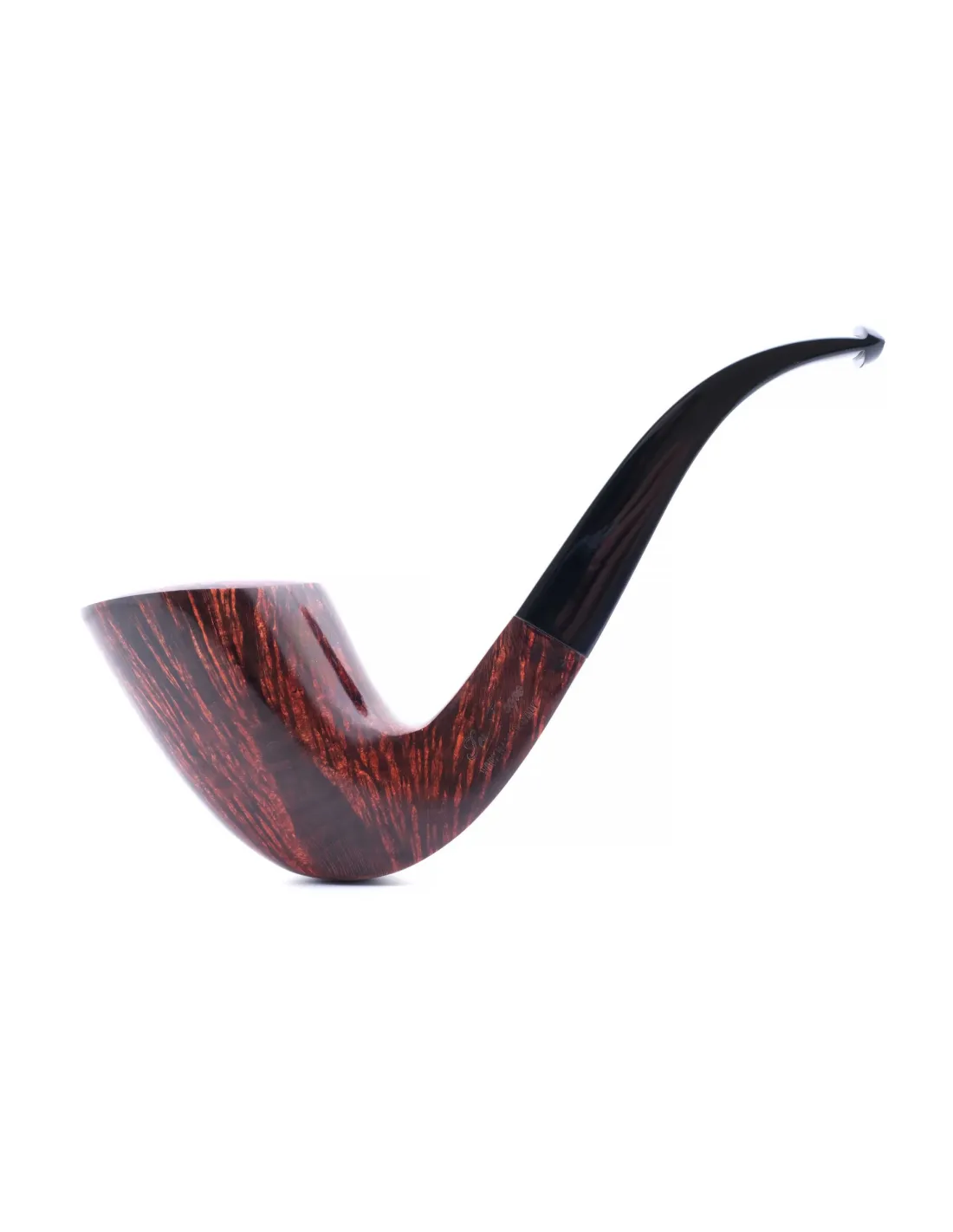 Форма чаши удобна для повседневного курения: стенки достаточно толстые, чтобы не перегреваться в руке, а объём позволяет спокойно наслаждаться табаком без спешки. Умеренно изогнутый мундштук помогает держать трубку во рту без лишнего напряжения челюсти, поэтому ей комфортно пользоваться и дома, и на прогулке.