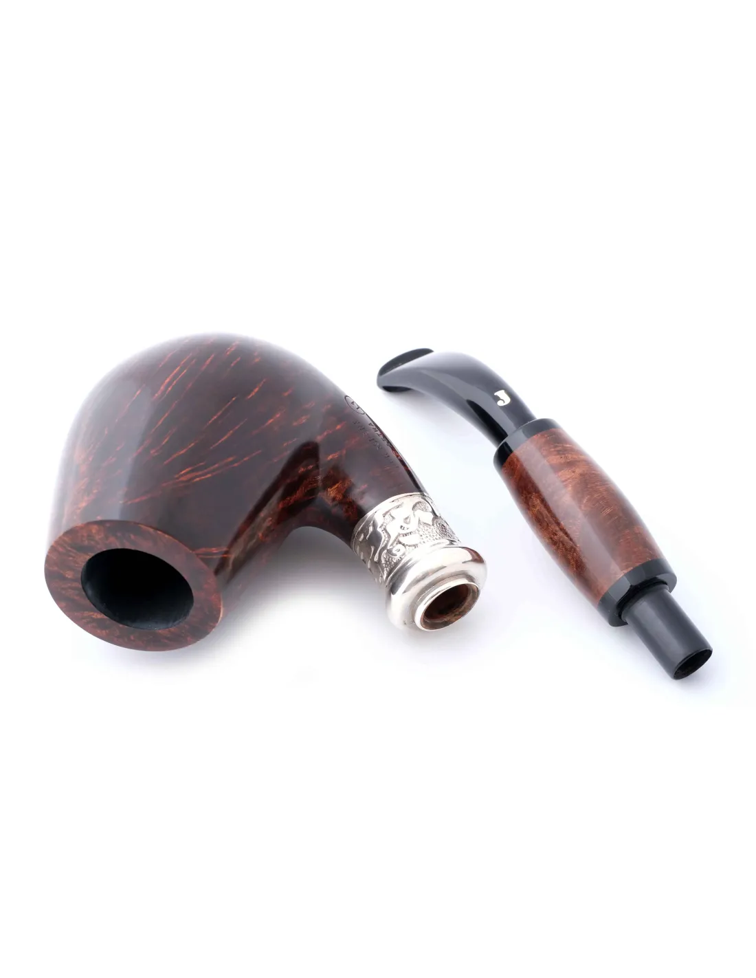 Чаша изготовлена из выдержанного брера, что помогает равномерно прогреваться табаку и сохранять вкус без лишней горечи. Мундштук продуман так, чтобы затяжка была мягкой и ровной, а дым не обжигал язык. Баланс между чашей и мундштуком позволяет легко держать трубку в зубах, не напрягая челюсть.