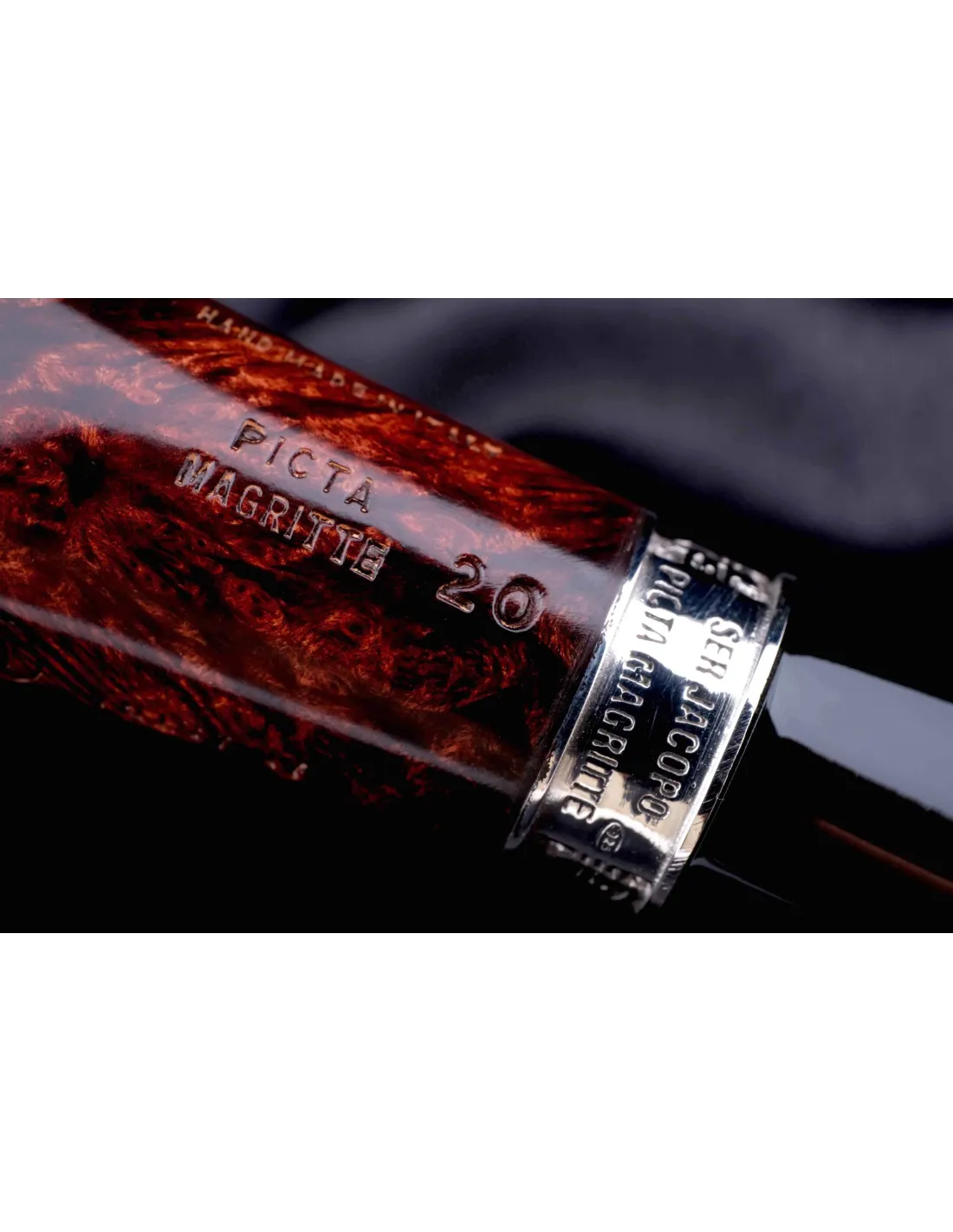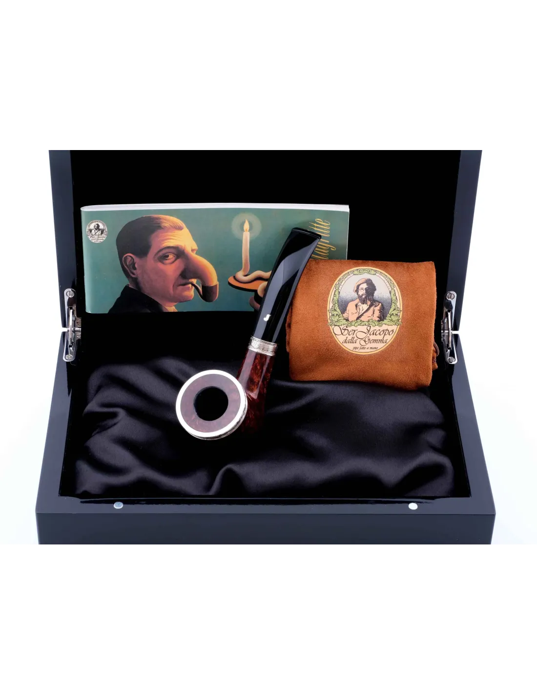 Трубка SER JACOPO Picta Magritte № 20 в шкатулке S025-1 — это коллекционная итальянская трубка ручной работы, вдохновленная творчеством Магритта. Аккуратно подобранная бриаровая чаша, выразительная форма и фирменная отделка придают ей запоминающийся внешний вид и делают каждую модель немного непохожей на другую.