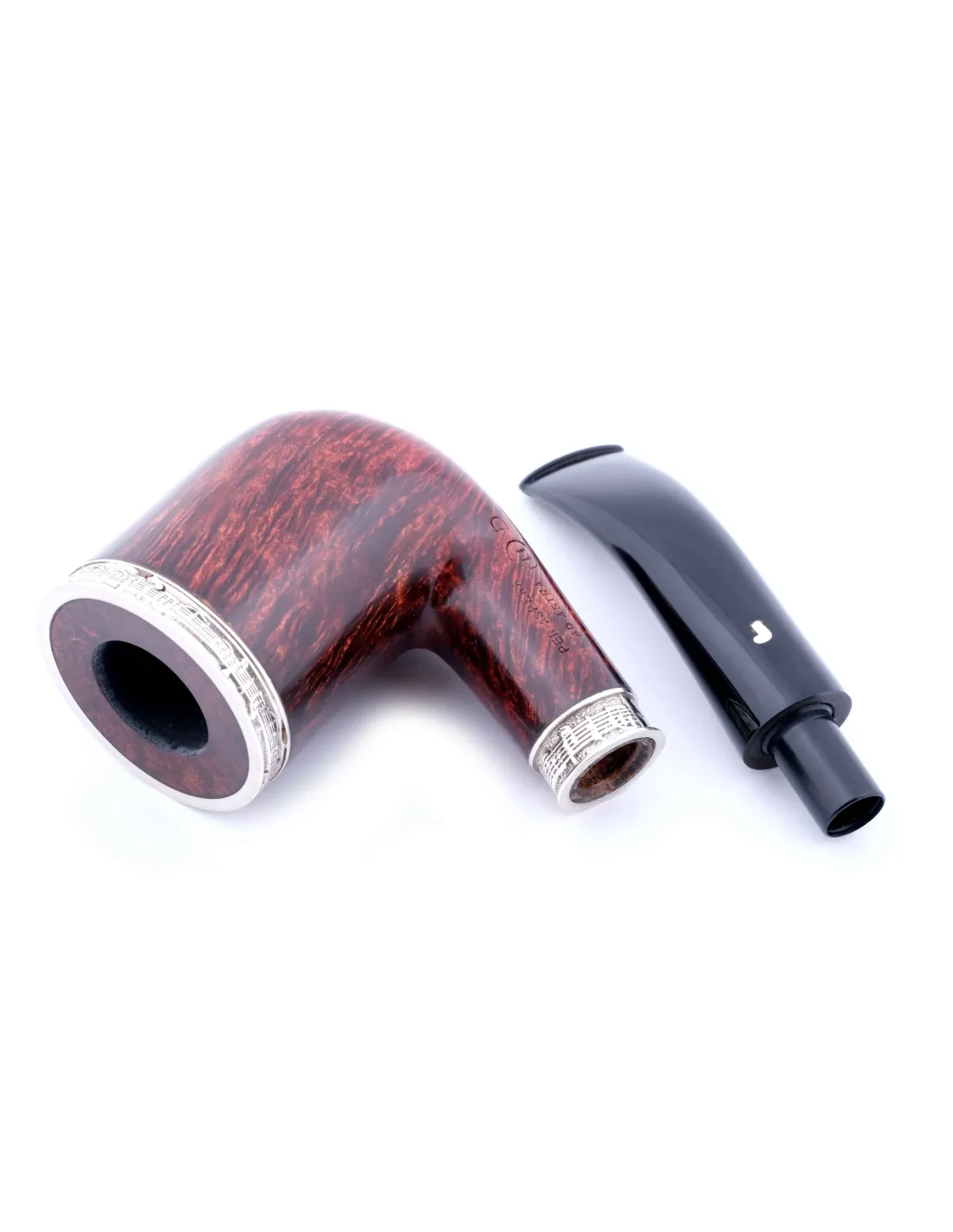 Трубка удобно лежит в руке за счет продуманного изгиба и сбалансированного веса, мундштук комфортен при длительном курении, а тяга ровная и легкая. Качественная обработка канала и чаши помогает табаку равномерно прогорать, не перегреваясь и сохраняя вкус. Трубка поставляется в элегантной шкатулке S025-1, которая подходит для бережного хранения и безопасной транспортировки.