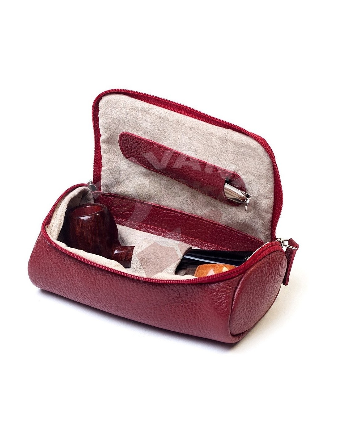 Cумка для одной трубки или двух мини-трубок, табака и аксессуаров. Внутри есть отдел для табака из каучука для сохранения влажности. Эта серия недорогих, но качественных курительных аксессуаров производится по заказу и под контролем итальянской компании Parenti&Agostinelli из Милана.