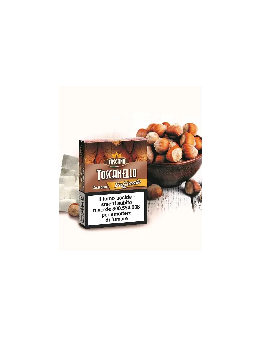 Toscano Toscanello Castano Raffinato (каштан в сахаре) — компактные ароматные сигариллы с мягкой, но выраженной табачной основой. Во вкусе ощущаются ноты сладкого каштана, лёгкая карамельность и деликатные древесные оттенки, которые плавно раскрываются в процессе курения. Сочетание натурального табака Kentucky и сладкого аромата создаёт ровное, гармоничное послевкусие без резкой горечи, делая эти сигариллы подходящими как для неторопливого вечера, так и для короткой паузы в течение дня.
