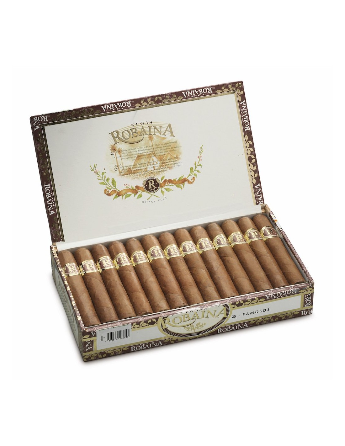 Сигары Vegas Robaina Famosos — это воплощение традиций кубинского табаководства. Основные характеристики: количество в коробке — 25 штук, страна — Куба, бренд — Vegas Robaina, формат — Robusto. Размеры: длина 127 мм, диаметр 19,05 мм. Предполагаемое время курения составляет 45-60 минут. Крепость сигары оценивается как средняя к крепкой. Начинка, связующий и покровный листы полностью состоят из отборного кубинского табака.