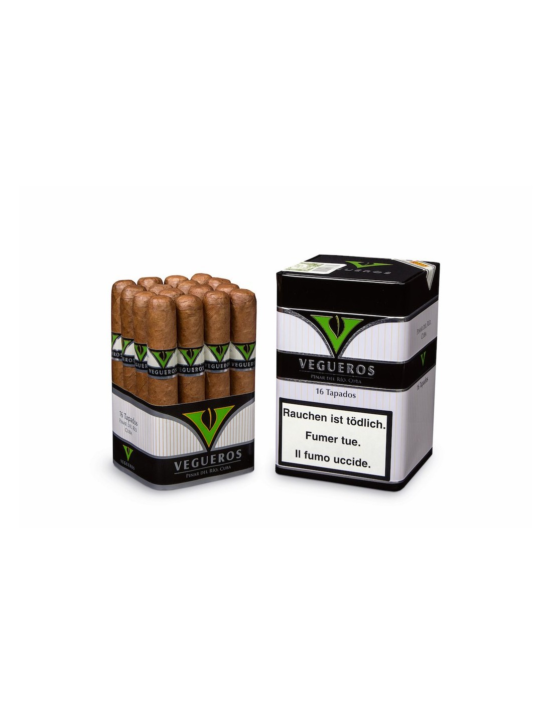 Сигары Vegueros Tapados — это яркий представитель современной кубинской табачной школы. Ключевые параметры этой витолы: количество сигар в коробке — 16, страна производства — Куба, бренд — Vegueros. Размер сигары составляет 120 мм в длину и 18,26 мм в диаметре, а среднее время курения — 45 минут. Крепость характеризуется как средняя к крепкой. Вся сигара, включая начинку, связующий и покровный листы, создана из отборного кубинского табака. Формат — Tapados.