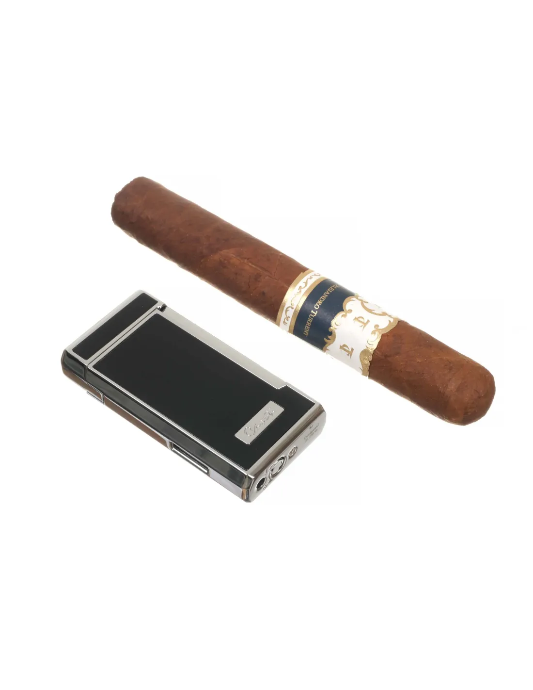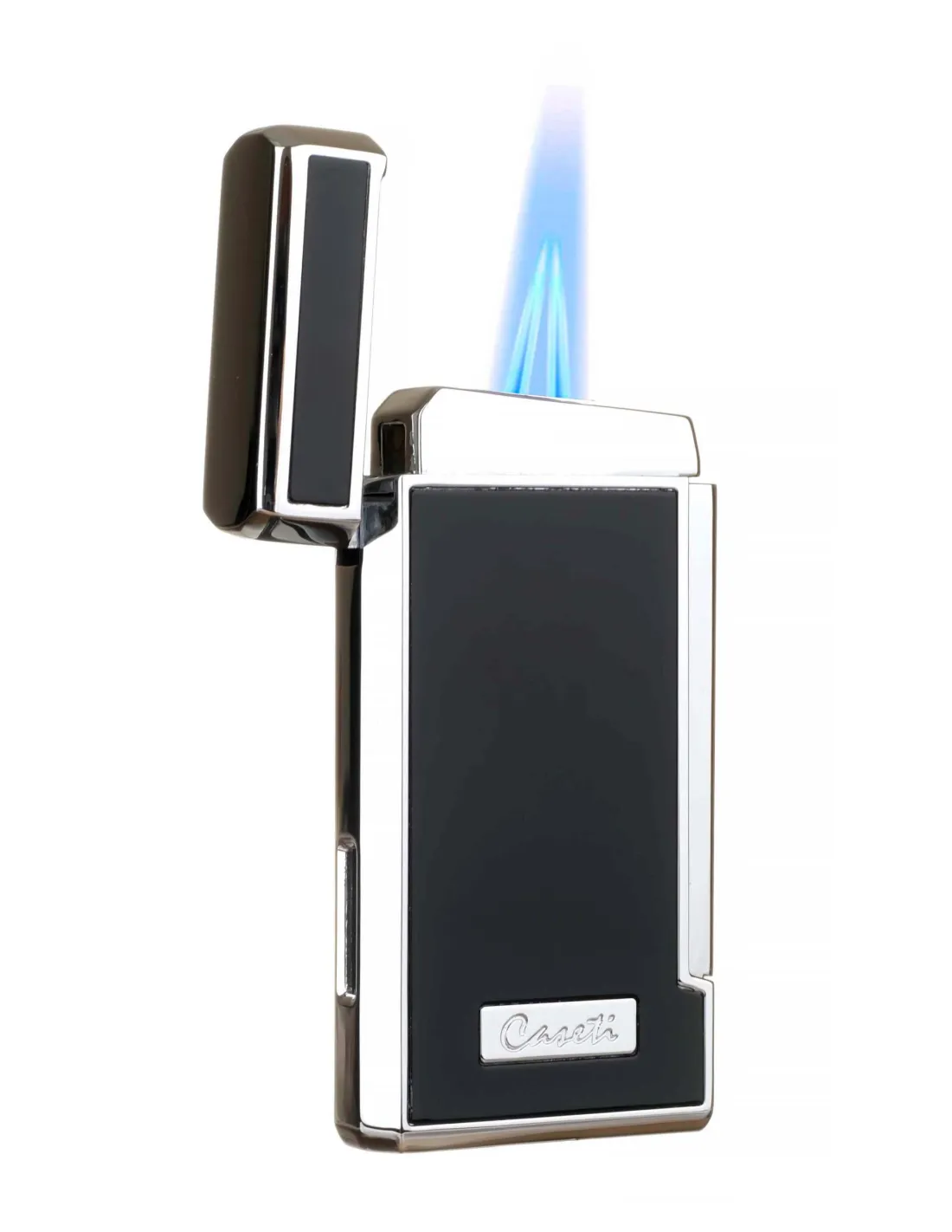 Новая сигарная турбо-зажигалка Caseti с двумя форсунками. Идеально подходит для розжига сигар благодаря мощному двойному турбо-пламени. В корпус встроен пробойник диаметром 8 мм. Размер 85x40x16 мм. Фирменная подарочная коробка, чехольчик для хранения и буклет от компании Caseti.