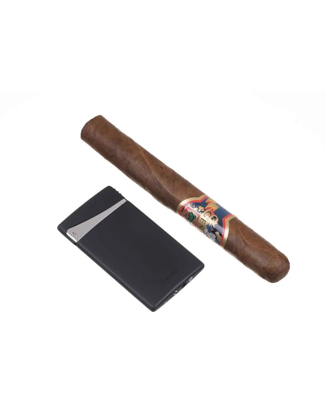 Турбо-зажигалка в супертонком корпусе французского бренда Caseti. Размер 67x37x5 мм. Фирменная подарочная коробка, чехольчик для хранения и буклет от компании Caseti.