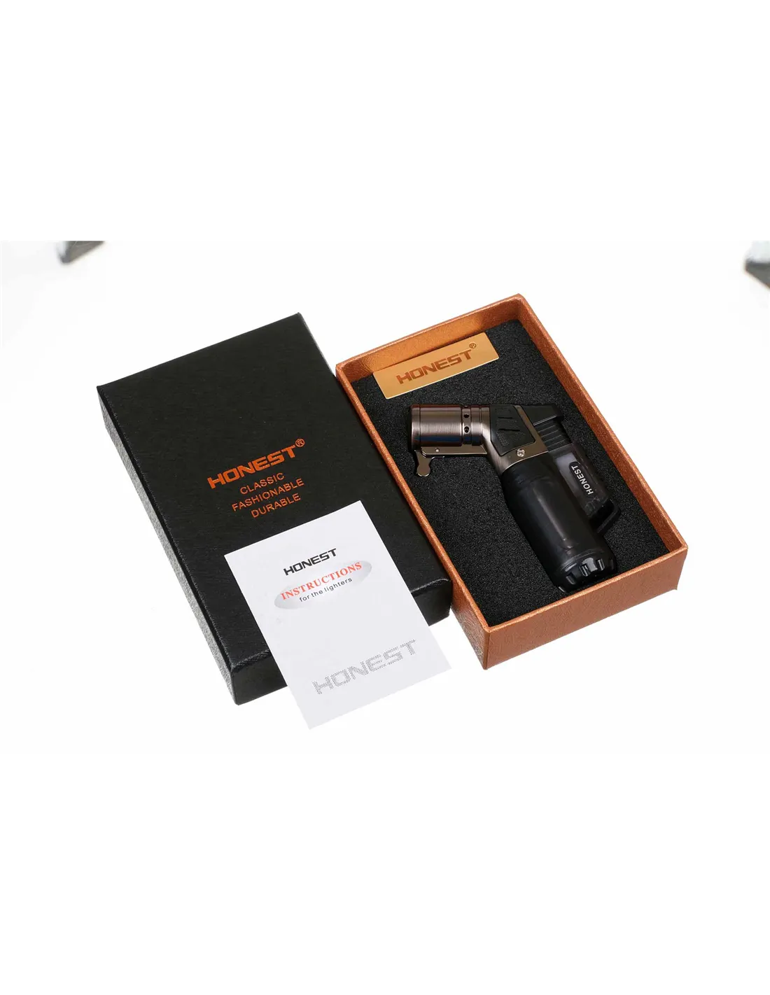 Зажигалка сигарная Honest, четверное пламя, с пробойником и сигарным ложементом, бронза...