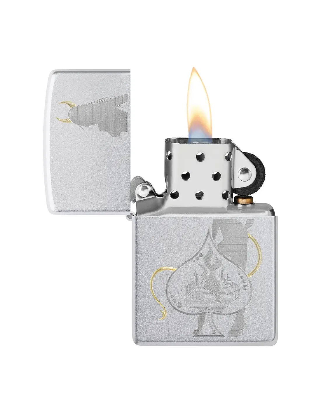 Zippo 48658 Devilish Ace в сатинированном хроме — культовый дизайн с дерзким характером и фирменным щелчком, который узнают с первого раза. Надежная ветрозащитная конструкция работает в любых условиях, подчеркивая ваш статус и вкус. Оригинал производства США, с пожизненной гарантией от производителя. Поставляется незаправленной.